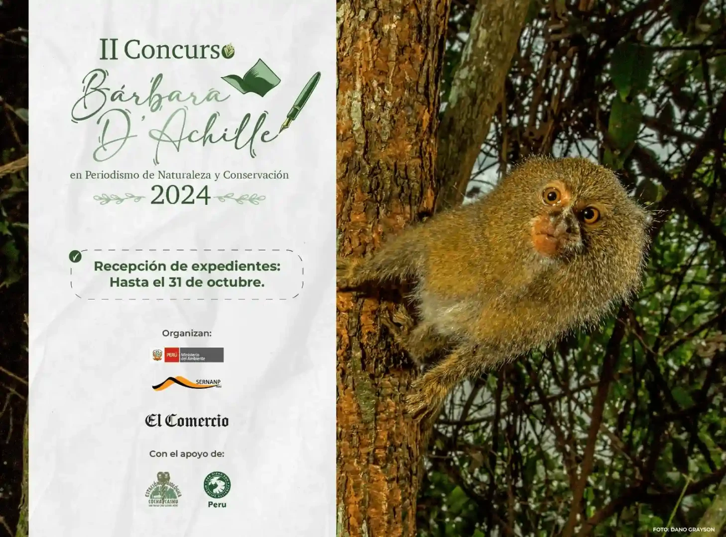 El Servicio Nacional de Áreas Naturales Protegidas por el Estado (Sernanp) y el diario El Comercio lanzan la segunda edición del Premio Bárbara D’Achille en Periodismo de Naturaleza y Conservación. Este concurso, que se celebra en 2024, tiene como objetivo resaltar la labor periodística que pone en valor la riqueza biológica del Perú y la dedicación de quienes trabajan por protegerla.