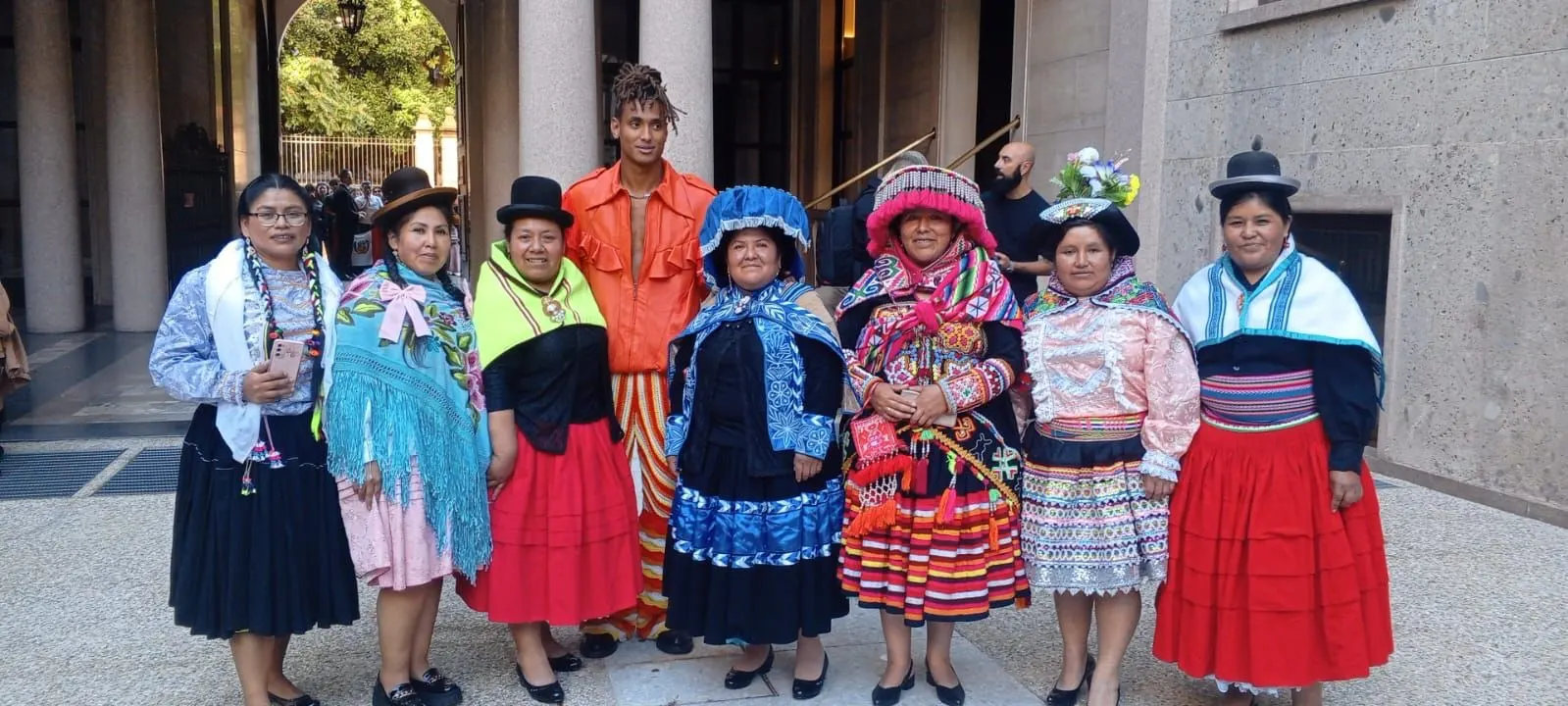 Aldava integra el equipo del diseñador Jorge Luis Salinas, quien coordina la producción con artesanos de distintas regiones del país. “Yo soy trabajadora del diseñador Jorge Luis Salinas”, precisó. Según señaló, el grupo está conformado por aproximadamente 50 artesanos provenientes de Huánuco, Huancavelica y Huancayo.