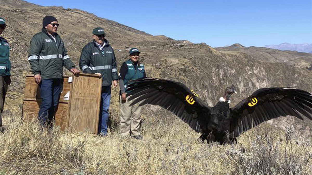 El Servicio Nacional Forestal y de Fauna Silvestre (Serfor) liberó al cóndor andino que hace un año fue encontrado al borde de la muerte y en cautiverio en Arequipa. Tras haber luchado contra la deshidratación, infecciones, maltrato y mala alimentación, Serfor lo rehabilitó durante un año y lo dejó libre en el Cañón del Colca.