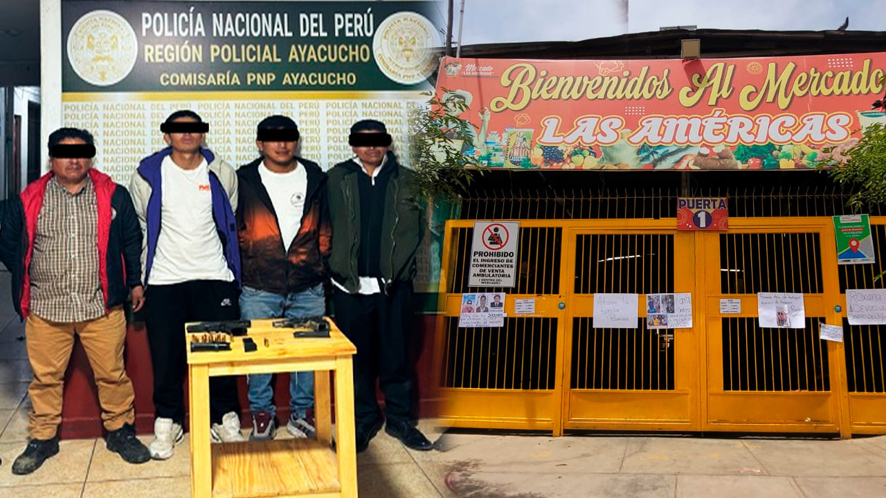 Agentes de la comisaría de Ayacucho intervinieron a cuatro sujetos presuntamente implicados en el delito de tenencia ilegal de armas de fuego. Los custodios del orden tomaron conocimiento sobre un altercado entre bandos que querían tomar la administración del mercado “Las Américas”, en el distrito de San Juan Bautista, produciendo un enfrentamiento a fuego cruzado.