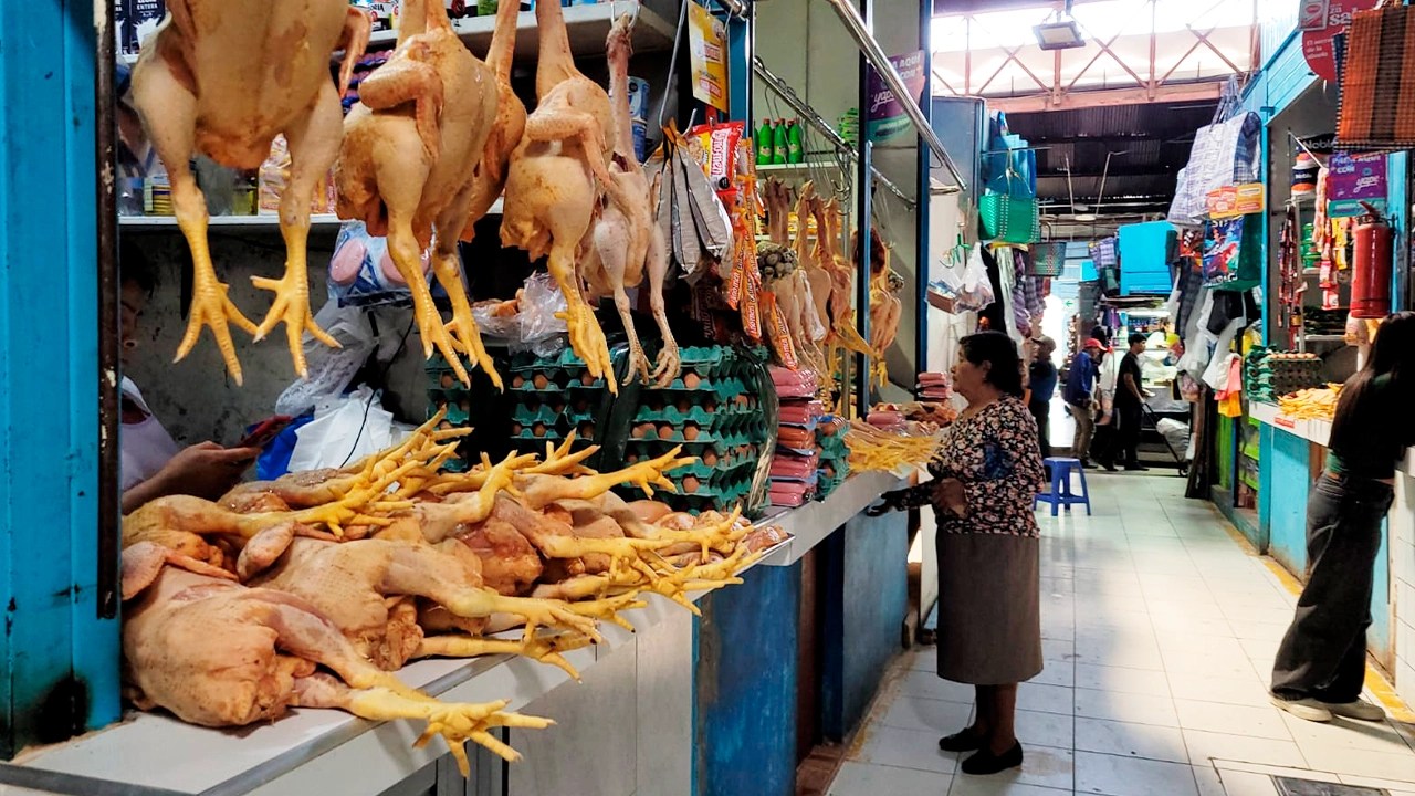 El precio del pollo ha subido en el mercado Carlos F. Vivanco, donde hoy los comerciantes venden el kilo entre 10 y 11 soles, mientras que el pollo limpio alcanza los 12 y hasta 13 soles. Además, la gallina se oferta a 17 soles el kilo y el huevo a 7.50 soles el kilo.
