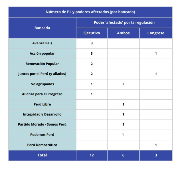 Un tercer aspecto es el momento político en que estas iniciativas adquieren mayor protagonismo. El conflicto tuvo una especial preponderancia durante el gobierno de Pedro Castillo, se intensificó en el periodo de transición al régimen de Dina Boluarte, en medio de las protestas nacionales y la discusión sobre un posible adelanto de elecciones, y luego ingresó en una etapa de “enfriamiento” que continúa hasta la actualidad. Esta periodización permite entender que el interés reformista no fue constante ni obedeció a una agenda institucional de largo plazo, sino que estuvo vinculado a la intensidad del conflicto político. Cuando la crisis era aguda y el desenlace del poder estaba en disputa, los proyectos proliferaron; cuando la relación de fuerzas se estabilizó en favor de la mayoría parlamentaria, el impulso reformador disminuyó.