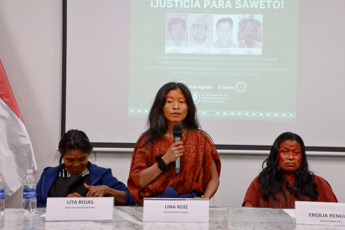 LIMA. Durante una conferencia de prensa transmitida este jueves 31 de agosto, las viudas de tres de los cuatro líderes indígenas asháninka asesinados el 1 de setiembre de 2014, cerca de la comunidad nativa Alto Tamaya-Saweto, en la región Ucayali, en compañía de la hija del cuarto defensor fallecido, expresaron su indignación en respuesta al reciente fallo que anuló la sentencia en primera instancia del caso Saweto. Dicha sentencia impuso una condena de 28 años y tres meses de prisión efectiva para los cinco acusados de haber cometido estos homicidios, entre ellos los madereros Hugo Soria Flores y José Estrada Huayta.