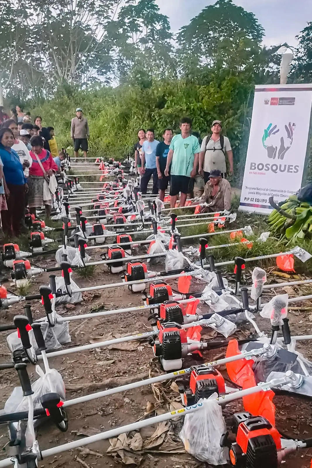 El proyecto también incluye equipamiento para mejorar el manejo agrícola del cultivo. La comunidad recibió tres motocultores con carrete, 270 jabas de plástico, balanzas, 54 cilindros plásticos, extintores y fertilizantes, herramientas que permitirán optimizar las labores de cosecha y manejo del plátano.