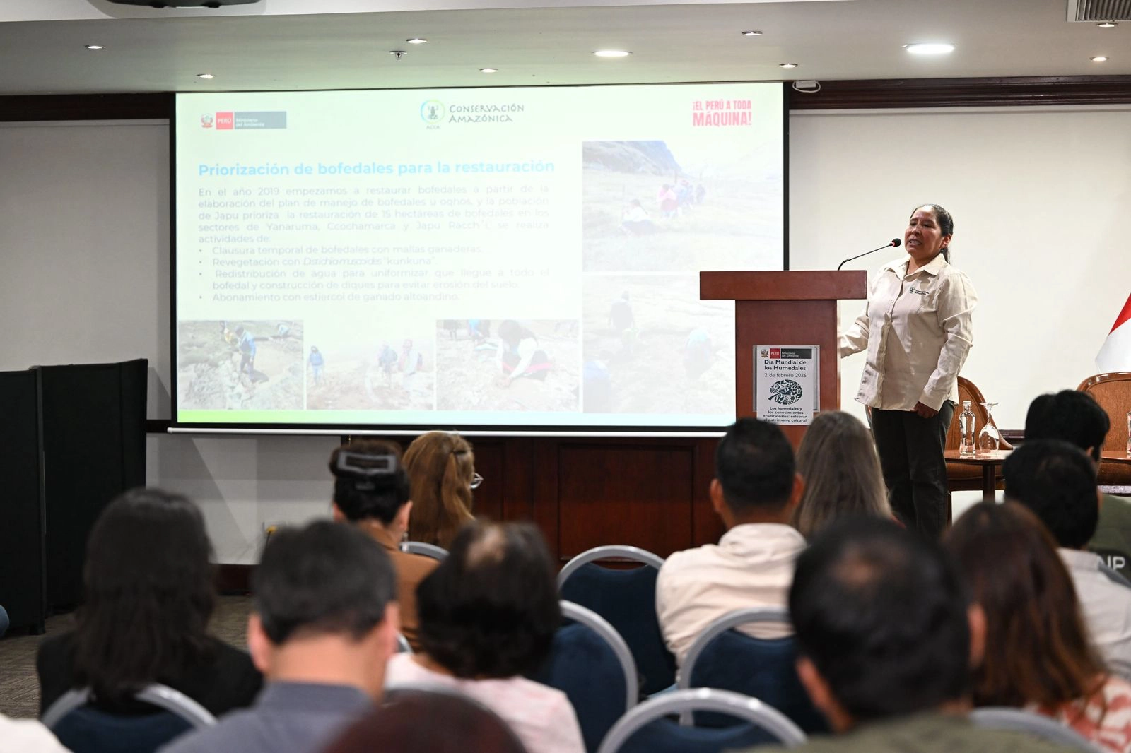 En un contexto global marcado por el cambio climático, la deglaciación y los incendios forestales, la respuesta para salvar nuestras fuentes de agua podría no estar solo en la tecnología moderna, sino en la memoria de los pueblos originarios. Así lo demostró Marlene Mamani Solórzano, especialista en restauración andina de Conservación Amazónica (ACCA), durante su presentación titulada “Plan de manejo de bofedales en la comunidad de Japu”, en el marco de las celebraciones por el Día Mundial de los Humedales.