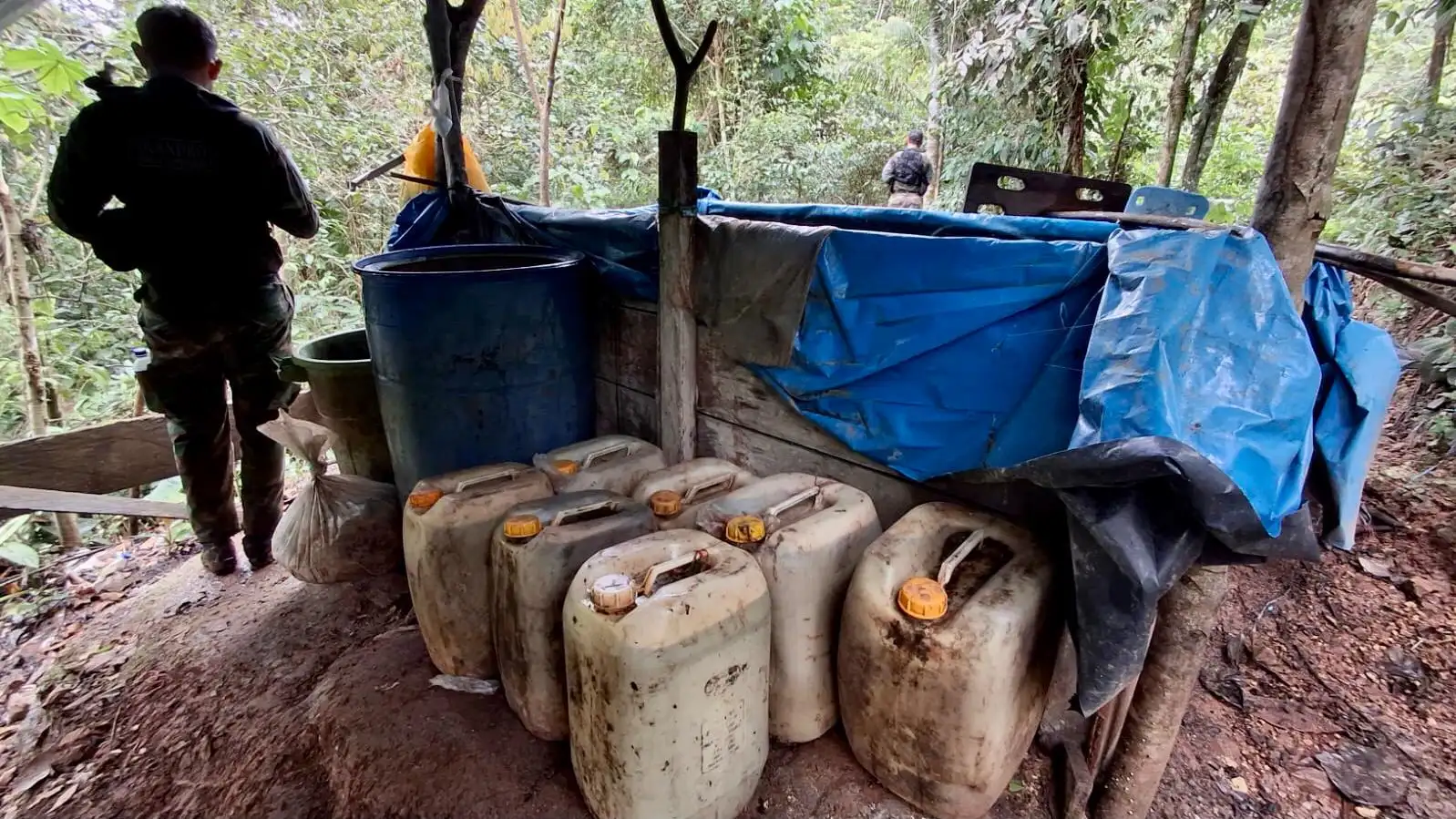 En paralelo, se intervinieron los sectores de Pucará, Cotomono, Bellavista y Huacamayo, donde se destruyeron diez laboratorios rústicos empleados en el procesamiento de pasta básica de cocaína.
