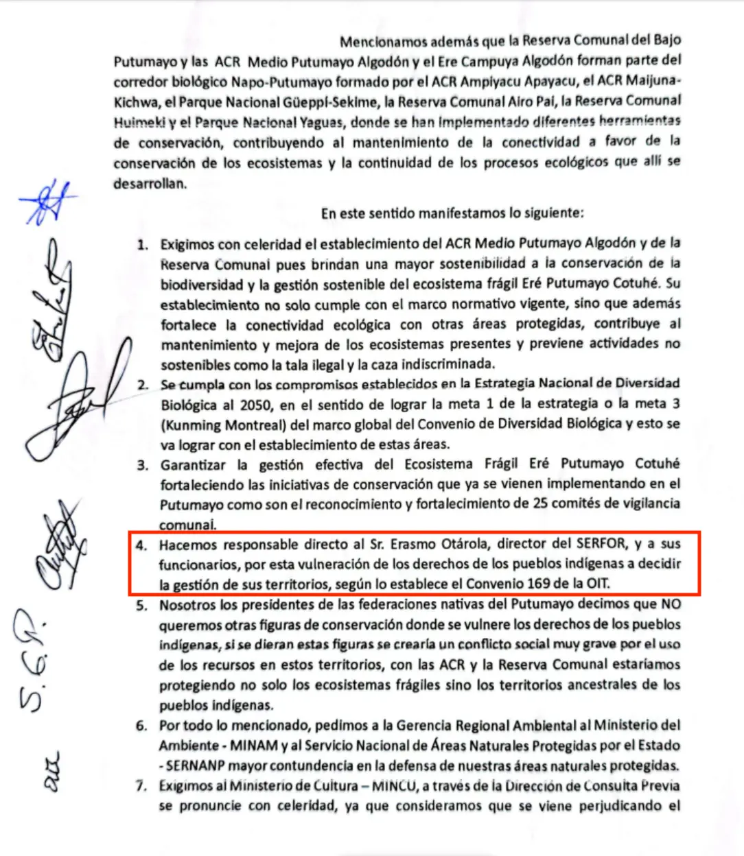 Solicitan que se reserve un espacio en las agendas para recibir a estas delegaciones, cuyo compromiso y lucha representan la defensa de la gestión ambiental regional y los derechos de los pueblos indígenas.