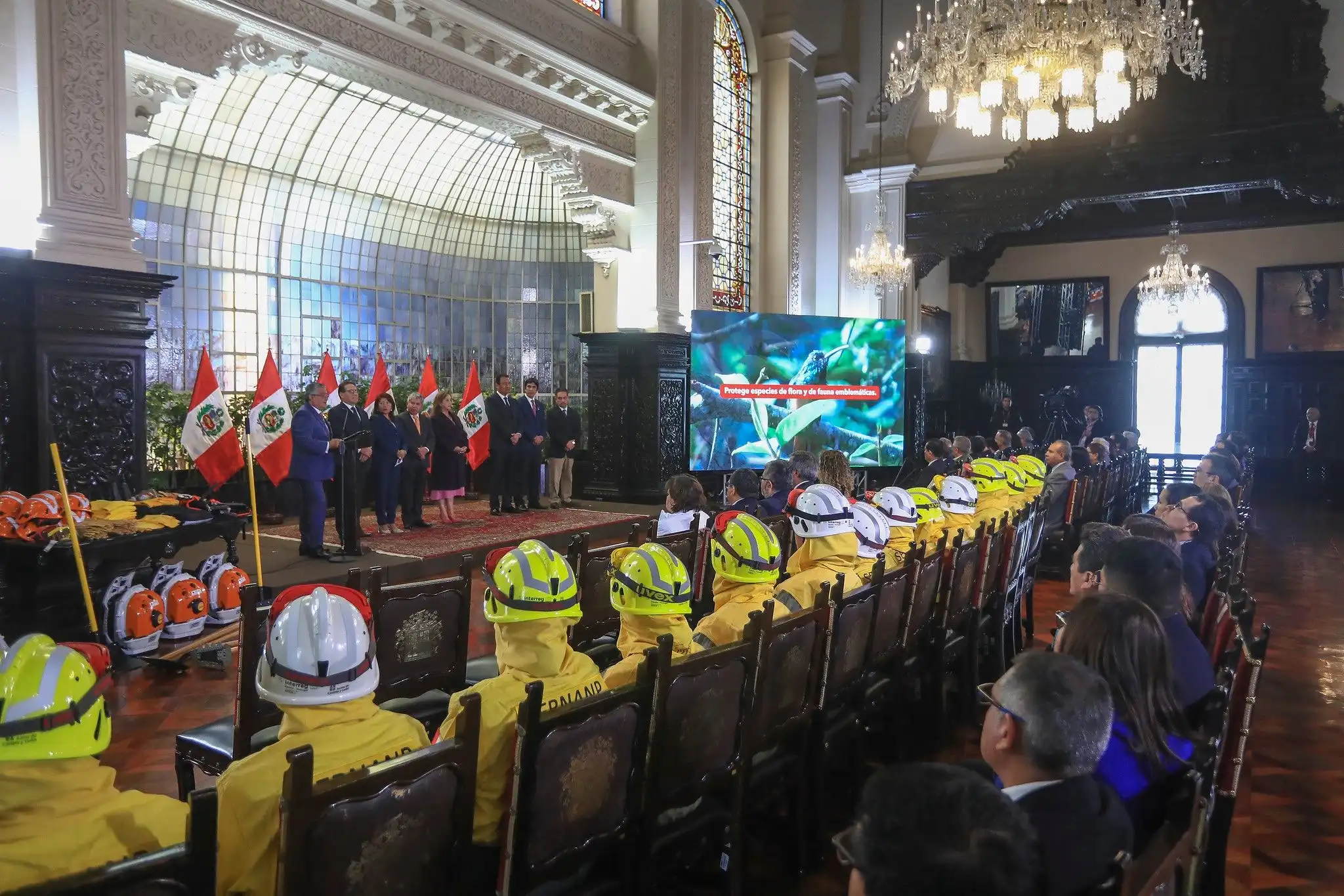 En la ceremonia realizada en Palacio de Gobierno participaron también el presidente del Consejo de Ministros, Eduardo Arana, y el ministro del Ambiente, Juan Carlos Castro. Este último resaltó la coordinación entre los distintos niveles de gobierno y el sector privado para enfrentar los incendios forestales.