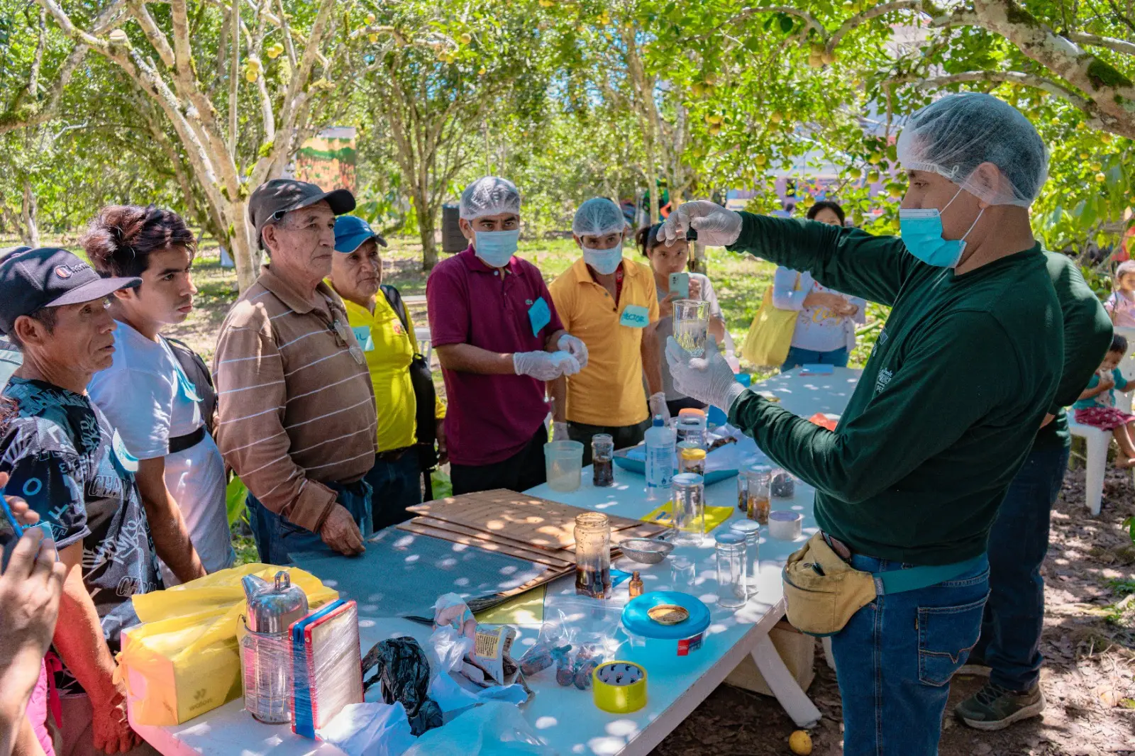 En el distrito de Pueblo Nuevo, más de 70 apicultores provenientes también de Santo Domingo de Anda, Venenillo y comunidades cercanas reforzaron sus conocimientos en temas clave como el laminado y estampado de cera con rodillo, la cosecha de propóleo y polen, y las buenas prácticas para la obtención de miel. Las estaciones fueron guiadas por el equipo técnico de la Actividad de Apicultura de Devida, que promovió ejercicios prácticos y asociativos para mejorar la calidad de los productos.