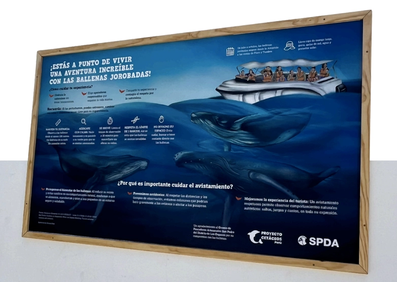En el norte del país, específicamente en Los Órganos (Piura) y Canoas de Punta Sal (Tumbes), el proyecto implementó el programa «Turismo Azul 2025». Entre julio y octubre, la organización formó alianzas con 2 empresas turísticas para convertir las salidas de observación en oportunidades de recolección de datos científicos.