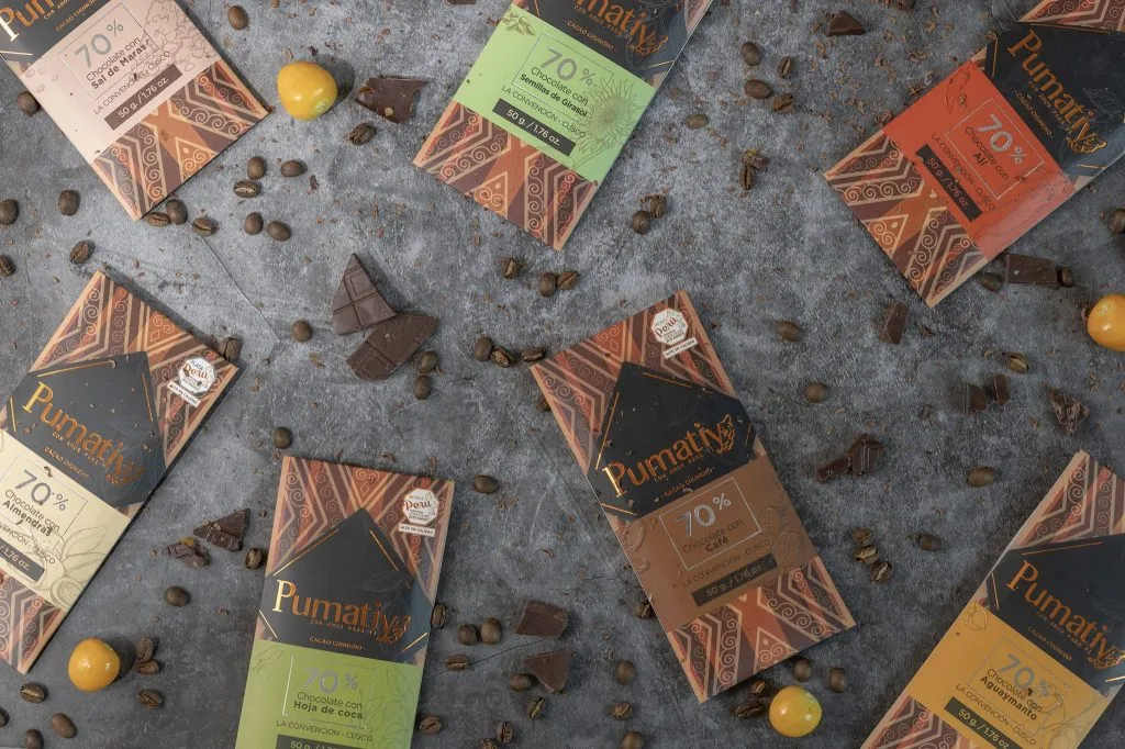 Pumatiy obtuvo dos medallas de plata con sus barras Theobroma Speciosum (cacawillo) 67% y 75% Majambo, productos elaborados en comunidades nativas y reconocidos por el uso de especies de Theobroma diferentes al cacao tradicional.