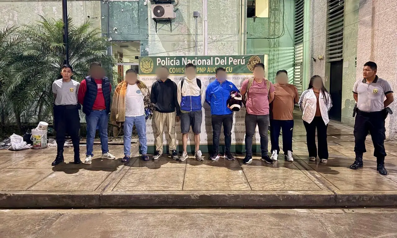 Como resultado del operativo, fueron detenidas nueve personas por el delito contra el medio ambiente, en la modalidad de minería ilegal. Los intervenidos fueron identificados como Dennis Víctor Meléndez Rimayhuamán (33), Leonel Pinares Aguilar (39), Paola Rosa Retis Inocente (21), Dumer Villanueva Guillermo (27), Santiago Iván Venegas Zuta (38), Adrián Ríos Castillo (20), Jimi Jossep Sánchez Tenazoa (34) y Wilber Montalvo Ccoyori (44).