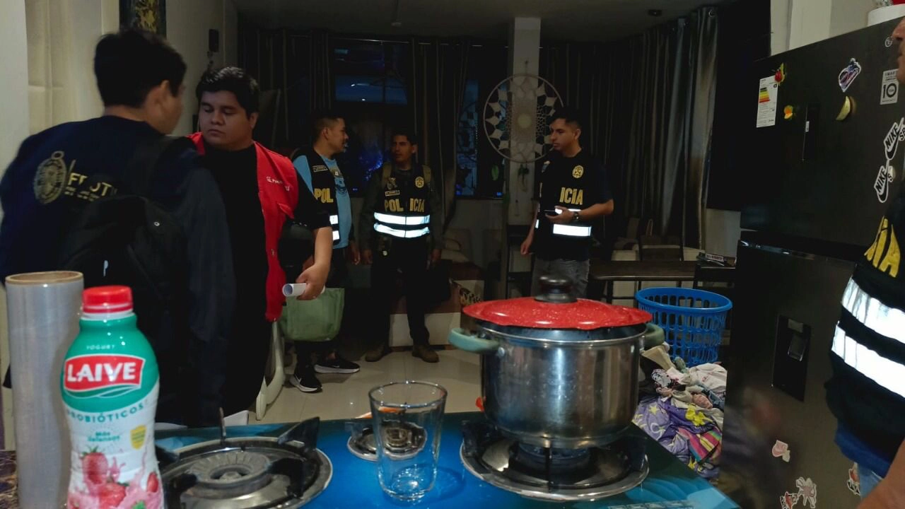 Durante el allanamiento, descerraje y registro domiciliario del inmueble ubicado en el Pueblo Joven Jesús Alberto Páez, los agentes incautaron 120 ketes de clorhidrato de cocaína (24 gramos), dos bolsas de marihuana tipo Cannabis Sativa (86 gramos), una computadora portátil, seis documentos nacionales de identidad (DNI), un cuaderno de apuntes, una balanza gramera y un rollo de papel aluminio.