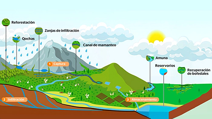 Las qochas, reservorios naturales ubicados en las cabeceras de cuencas y en depresiones del terreno, junto con las zanjas de infiltración, excavan canales para captar el agua de lluvia, han demostrado ser soluciones viables. Estos métodos permiten la recarga de los acuíferos subterráneos y aseguran la disponibilidad del agua durante los períodos secos, beneficiando tanto la producción agrícola como la ganadera.