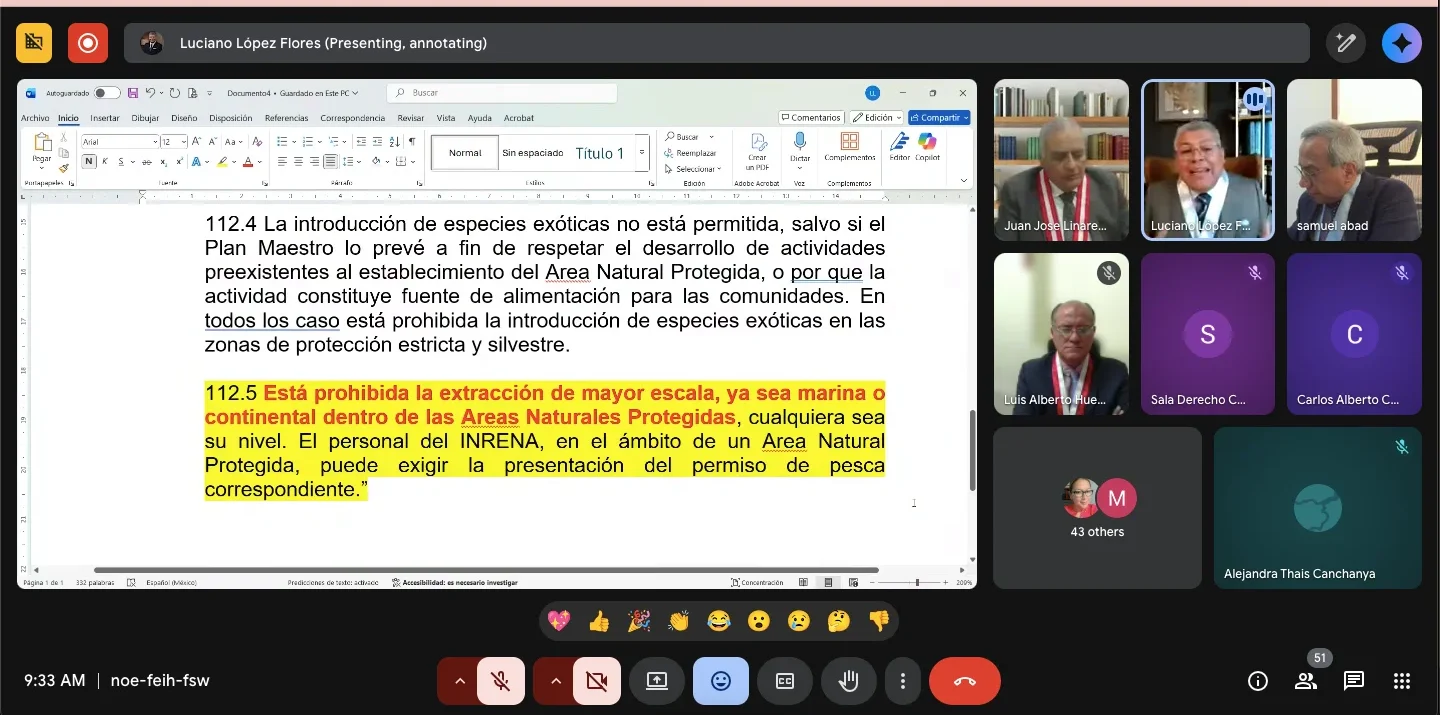 En la audiencia de apelación también participó Luciano López, abogado de la organización Oceana, en calidad de tercero interesado. Durante su intervención, explicó que la estrategia legal de la SNP busca eludir las reglas usando como pretexto una norma más reciente, la directiva de 2021. Lo hace, señaló, porque si la SNP hubiera querido cuestionar la ley de las ANP, publicada en 2001, el plazo legal para hacerlo (cinco años) venció en 2006. Por eso ahora recurren a una directiva que en la realidad no crea una nueva restricción, sino que reafirma una norma vigente desde hace más de dos décadas.
