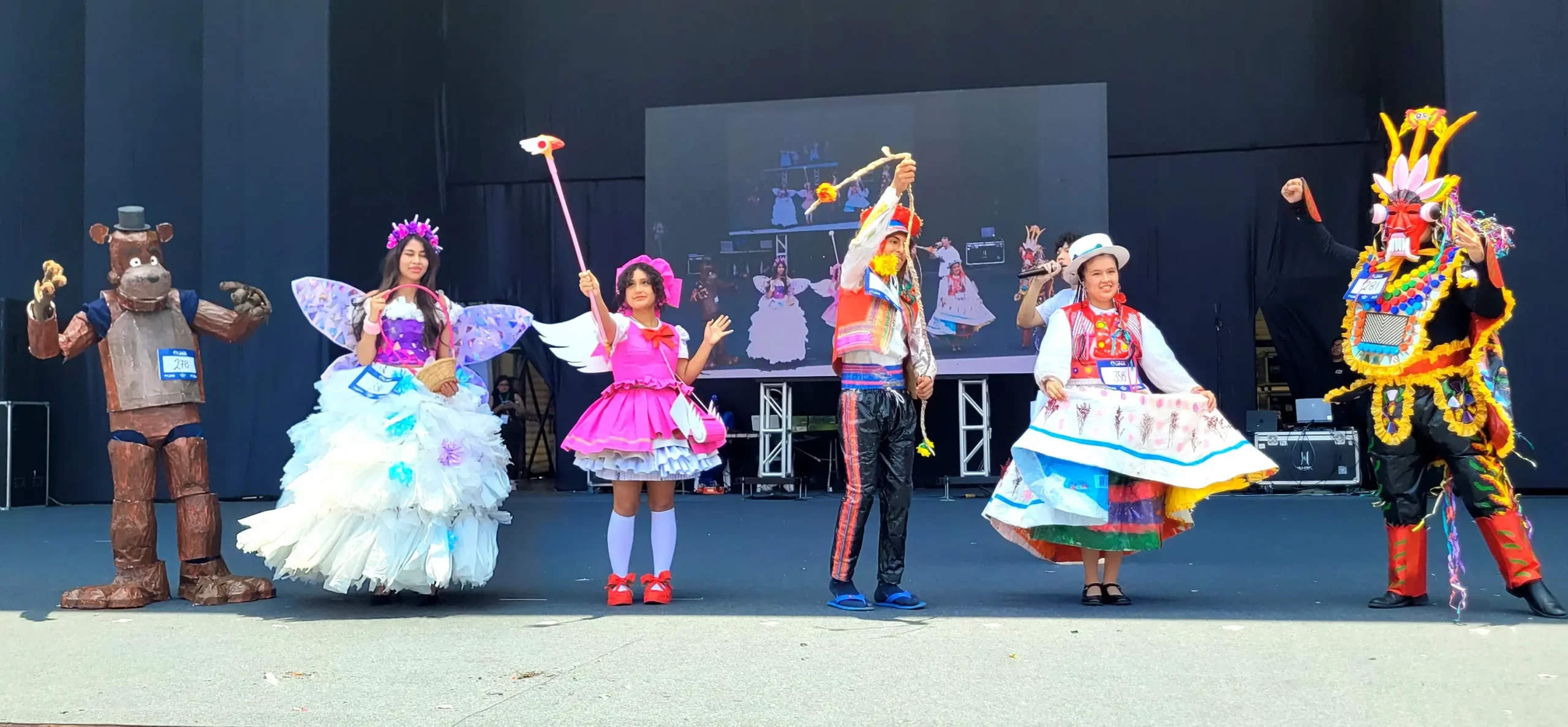 Por otro lado, la creatividad también tuvo su espacio en la categoría “Ecomoda”, donde estudiantes de primaria y secundaria presentaron más de 250 vestuarios elaborados con materiales reciclados. En una pasarela colorida, el arte y la sostenibilidad se fusionaron para mostrar que el reciclaje puede ser también una expresión de innovación.