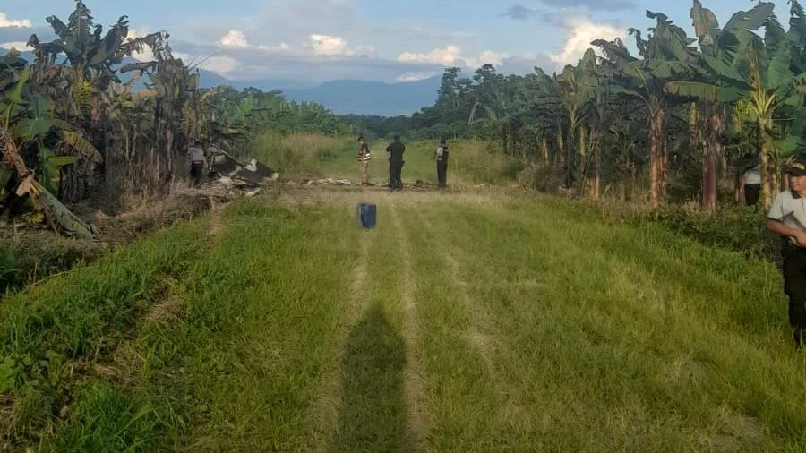 Al llegar, encontraron los restos de una avioneta Cessna de color blanco con franjas azul y rojo, sin ocupantes ni rastros de carga ilícita. Según las primeras indagaciones, la aeronave habría intentado despegar cuando impactó con plantaciones de plátano, lo que habría provocado su caída.