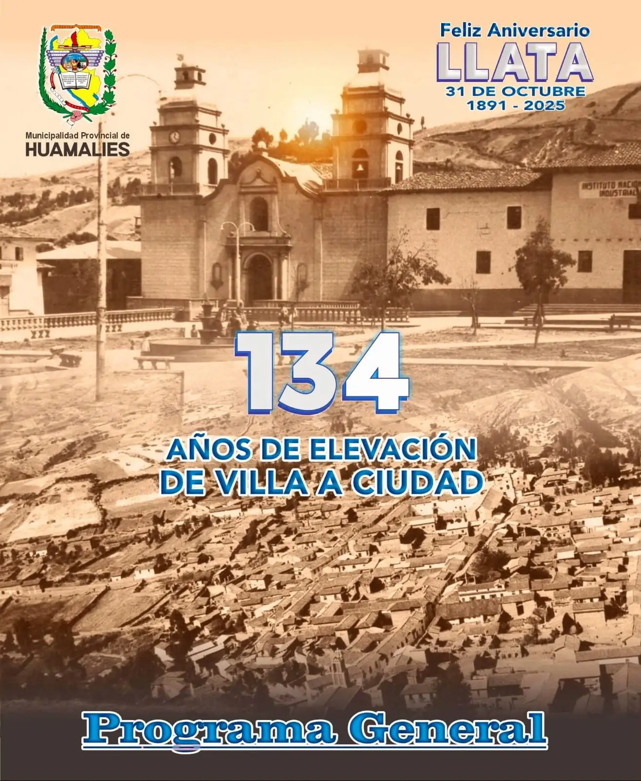 La ciudad de Llata, capital de la provincia de Huamalíes, celebrará este 31 de octubre 134 años de haber sido elevada de villa a ciudad. El consejero regional Ricardo Prado informó que las celebraciones se realizan en el marco de un mes festivo para toda la provincia, ya que seis distritos también conmemoran su aniversario de creación política durante octubre.