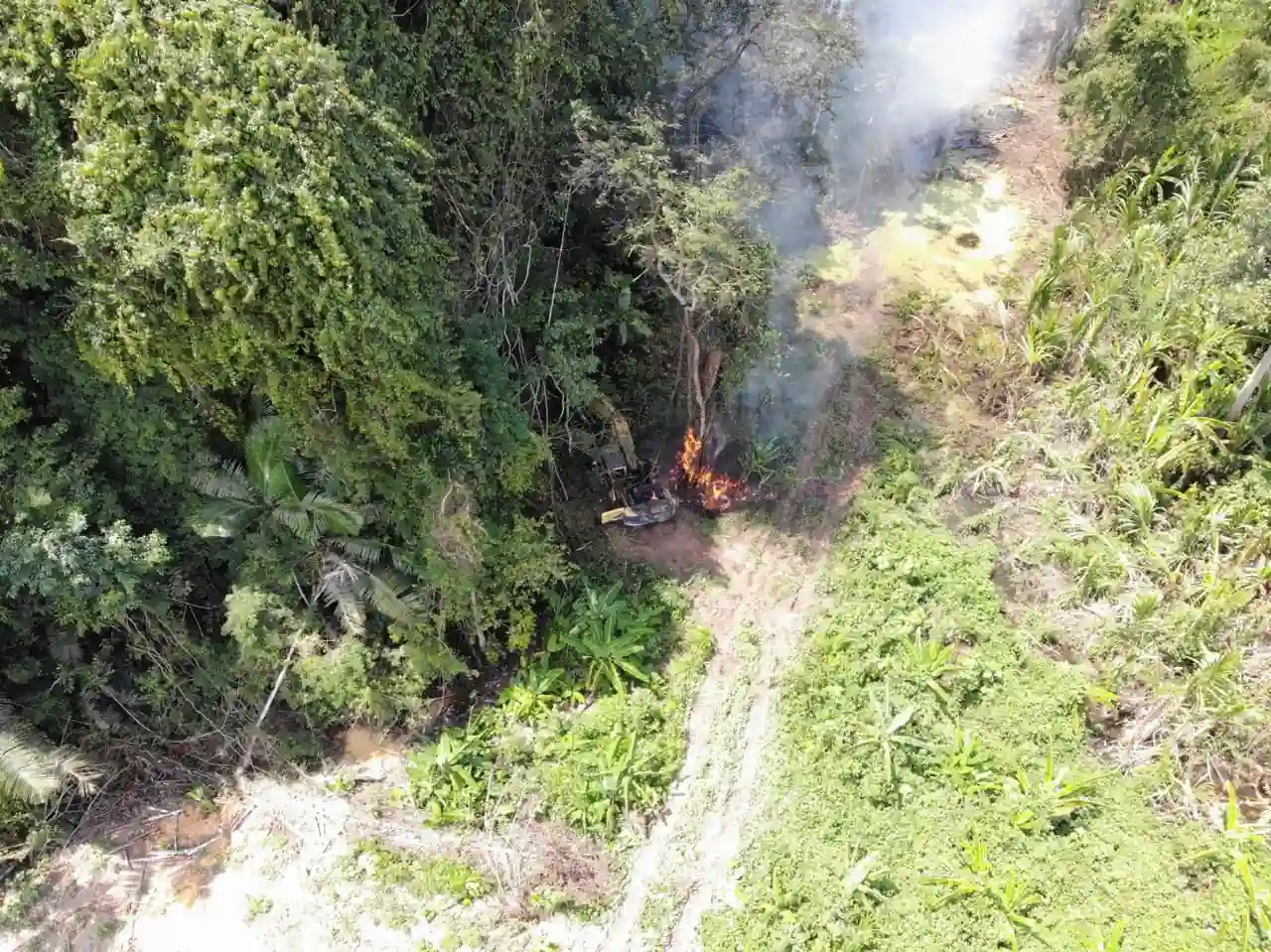 Otra de las zonas intervenidas fue Tzamiri, donde se encontraron 7 excavadoras oruga, 3 chutes, 2 motores y 1 campamento.