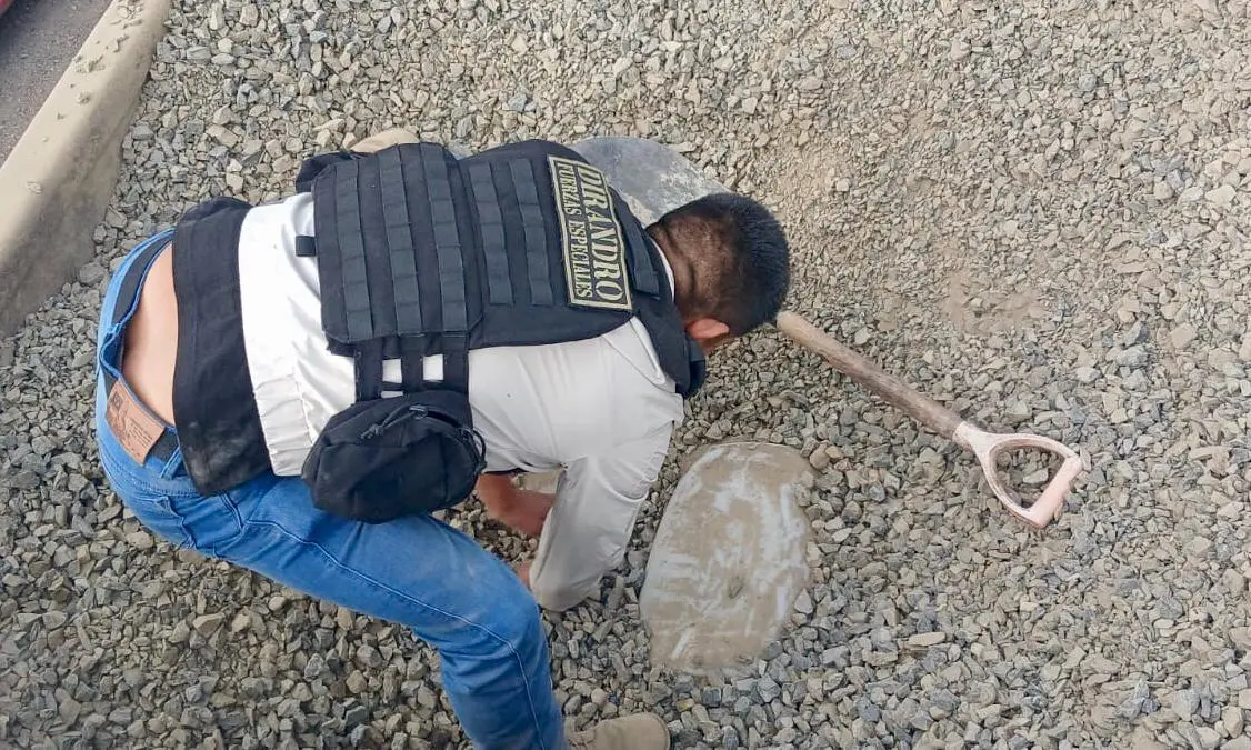 Los agentes intervinieron un volquete que transportaba aparente agregado de construcción. Al inspeccionar la carga, hallaron 97 bidones escondidos bajo la arena. El peso total de la sustancia incautada asciende a más de dos toneladas y media de acetona, utilizada para la elaboración de clorhidrato de cocaína.