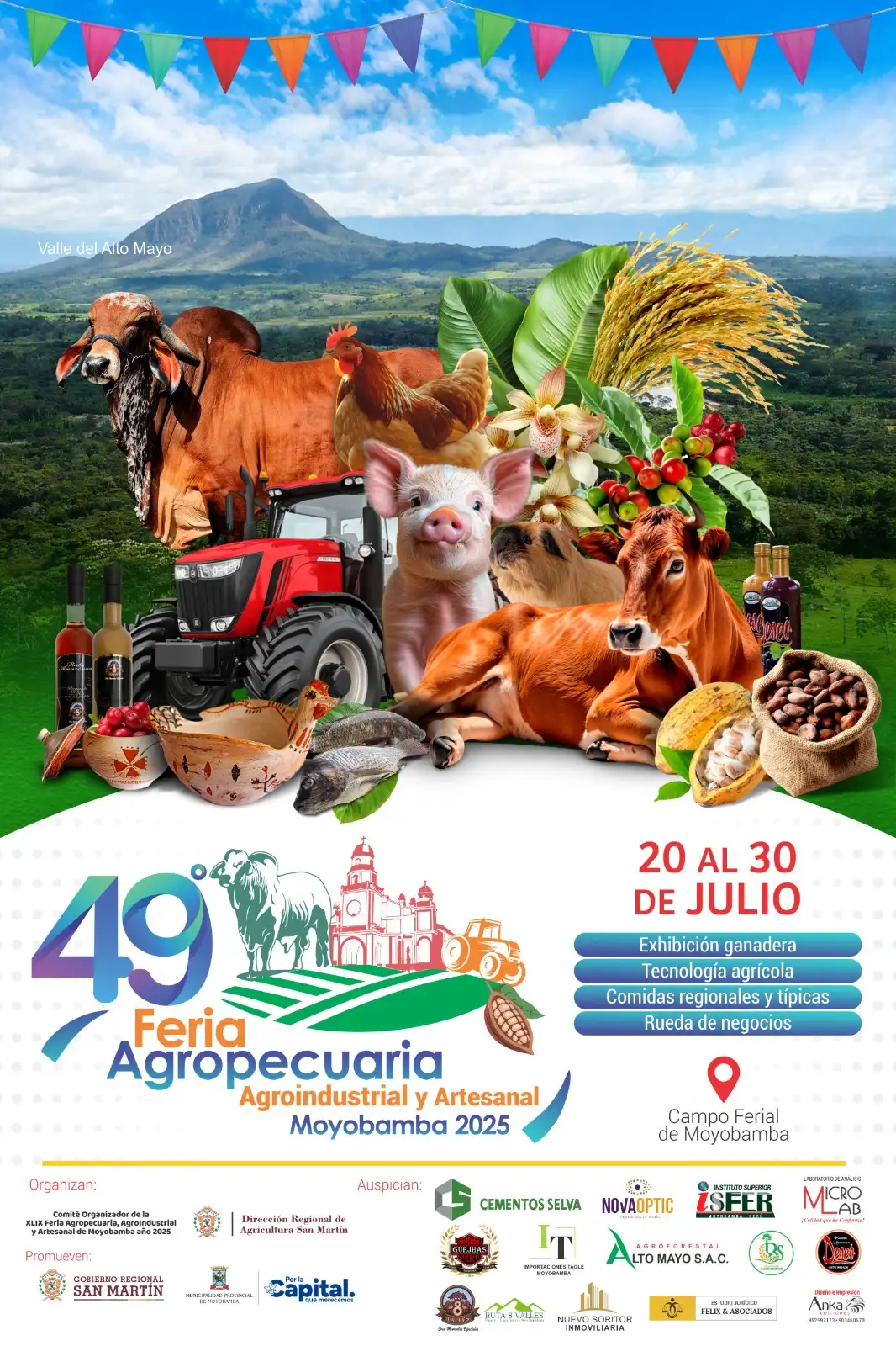 La ciudad de Moyobamba, capital de la región San Martín, será sede de la 49° Feria Agropecuaria, Artesanal y Turística San Martín 2025, uno de los eventos más importantes del calendario regional. Este se desarrollará del 20 al 30 de julio en el renovado Campo Ferial Ayaymama, con la participación de productores, emprendedores y comunidades de diversas localidades.