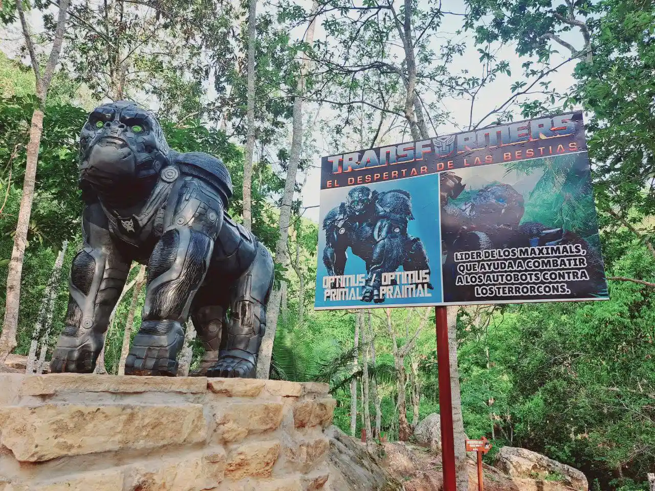 Uno de los mayores atractivos del lugar es una escultura de Optimus Prime, construida a partir de piezas de vehículos como trimóviles y motocicletas. La figura metálica, de tamaño imponente, se ha convertido en el fondo preferido para las fotos de los visitantes. Junto a ella, una escultura de un águila gigante, inspirada en el personaje de Airazor, complementa la experiencia temática.