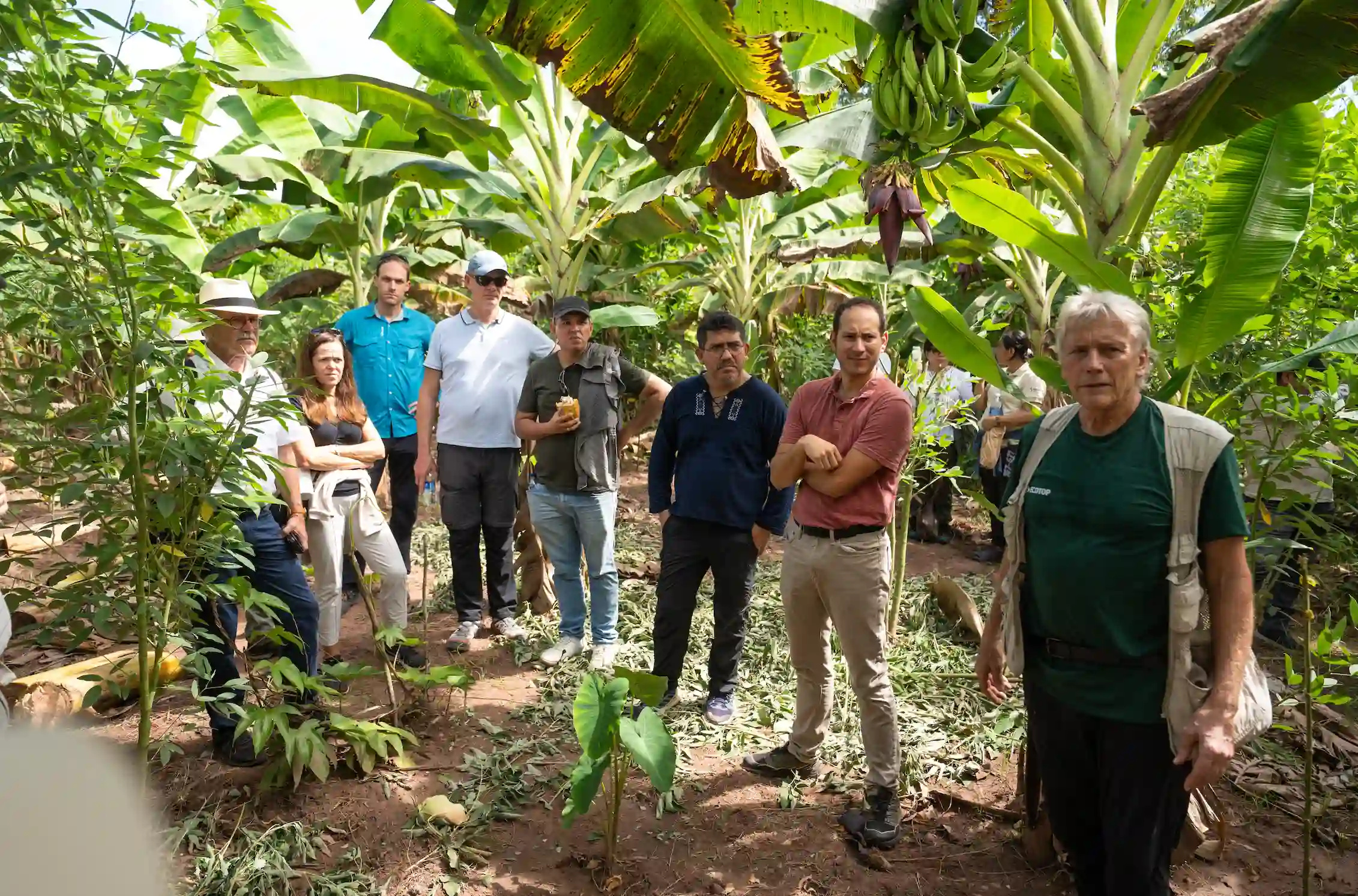 La visita no fue solo protocolar. Los delegados recorrieron parcelas de la Cooperativa Agraria ACOPAGRO, socio estratégico del proyecto «Paisajes Sostenibles de Cacao», implementado por Helvetas Perú. Allí, constataron la implementación de sistemas agroforestales, un modelo que combina el cultivo de cacao con árboles nativos para recuperar suelos y biodiversidad.