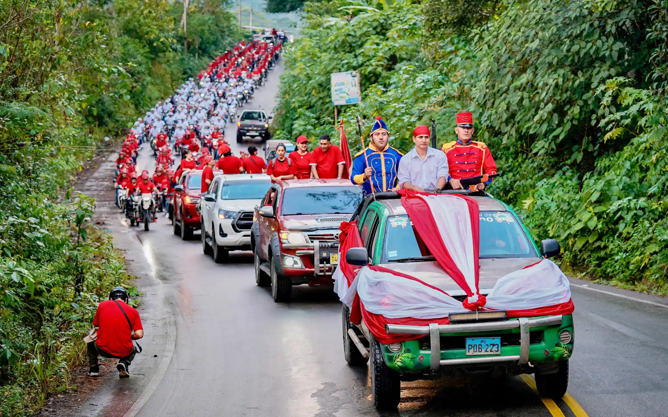 Desde las primeras horas del día, un pasacalle motorizado recorrió las principales calles de la ciudad. Cientos de motociclistas formaron los colores rojo y blanco de la bandera nacional, en una iniciativa que buscó reforzar el sentido de identidad y memoria colectiva.