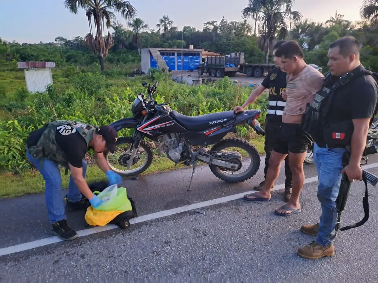 La operación tuvo lugar a la altura del caserío Miraflores, en la carretera Federico Basadre. Según información policial, los detenidos fueron identificados como Jonas Elguera Rojas (43) y Elvis Never Malpartida Espinoza (27), quienes se movilizaban en un trimóvil rojo y una motocicleta negra. Los agentes sorprendieron a ambos en flagrancia mientras realizaban el pase de la droga.