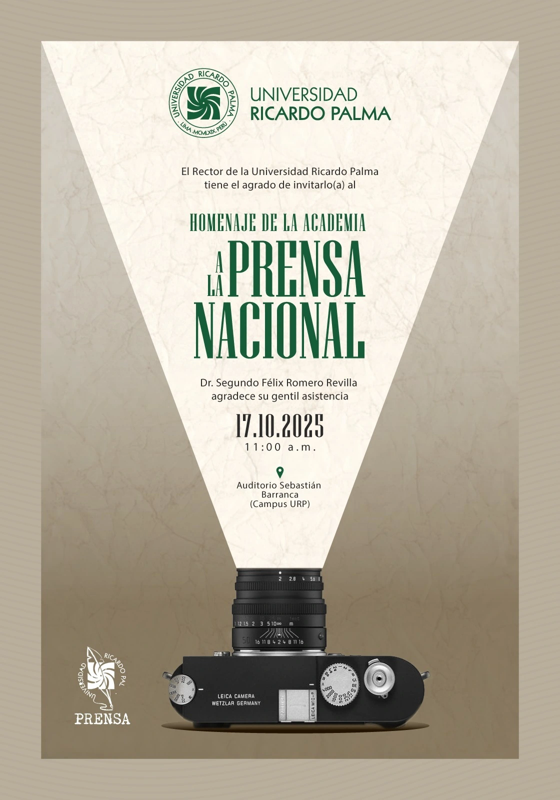 La Universidad Ricardo Palma (URP) rendirá homenaje a la Prensa Nacional con la realización del foro “Entre la Verdad y el Algoritmo: Cómo ejercer un periodismo ético y protegido en la era digital”, organizado conjuntamente con el Consejo de la Prensa Peruana. La actividad se llevará a cabo el viernes 17 de octubre de 2025, a las 11:00 a.m., en el Auditorio “Sebastián Barranca” de dicha casa de estudios. El ingreso será libre.