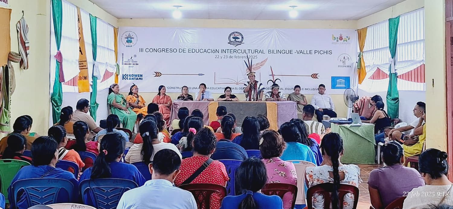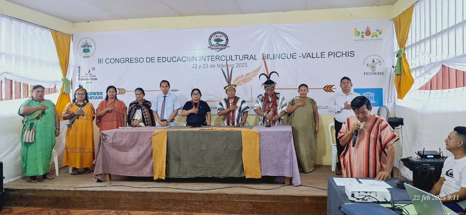 El III Congreso de Educación Intercultural Bilingüe concluyó con acuerdos claves para fortalecer la educación indígena y promover la conservación del territorio. Las autoridades locales y comunales se comprometieron a trabajar conjuntamente para garantizar la continuidad del Instituto FAJAM y mejorar las capacidades lingüísticas de los docentes, fortaleciendo el uso del idioma originario en las aulas. También se acordó elaborar materiales educativos contextualizados, consolidar la variante dialectal Ashaninka del Valle del Pichis y promover la oralidad y las prácticas culturales en las comunidades.