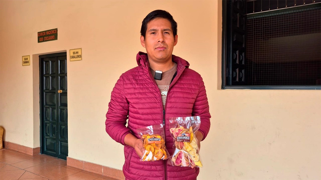 Se trata de Lino Jayo, egresado de Ingeniería Agroindustrial, quien puso en marcha un emprendimiento dedicado a la producción de snacks a base de papa nativa, plátano y camote, elaborados con insumos principalmente de la región. La iniciativa surgió durante su etapa universitaria y se consolidó tras constatar las limitadas opciones de inserción profesional al concluir sus estudios.