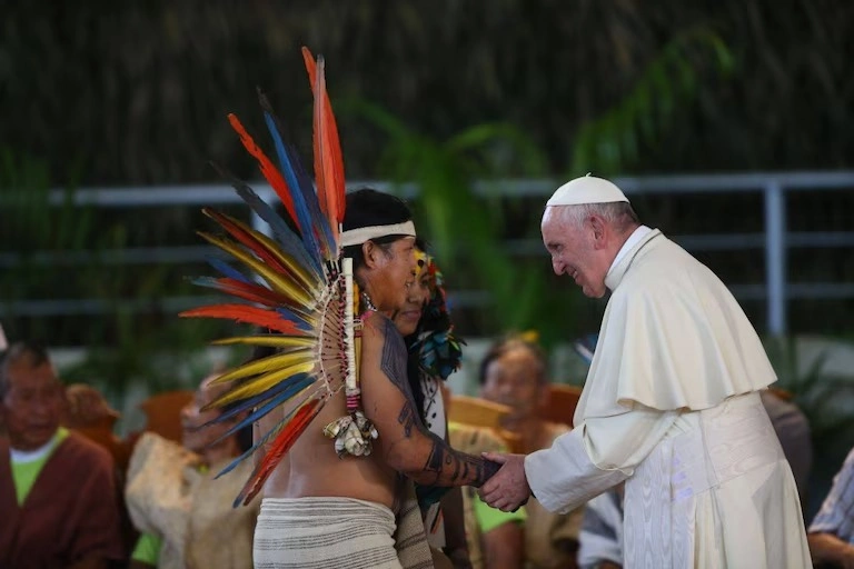 “Si, para algunos, ustedes son considerados un obstáculo o un estorbo, en verdad, ustedes con su vida son un grito a la conciencia de un estilo de vida que no logra dimensionar los costes del mismo”, dijo ante miles de indígenas. Reconoció su papel crucial en la defensa de los ecosistemas amazónicos. Su presencia fue histórica: nunca antes un papa había visitado esta región.