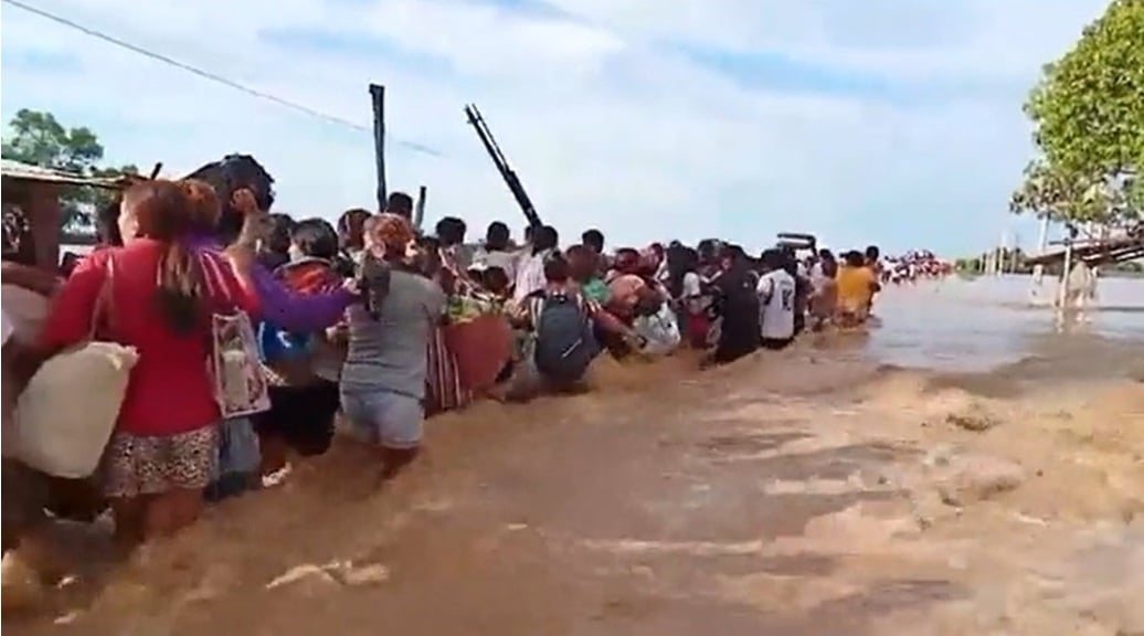 El río Tumbes se desbordó tras las intensas lluvias, dejando varios distritos de la región completamente inundados, especialmente dedicados a los campos de cultivo y al sector agrario. En el centro de la ciudad, el uso de motobombas no es suficiente para la limpieza.