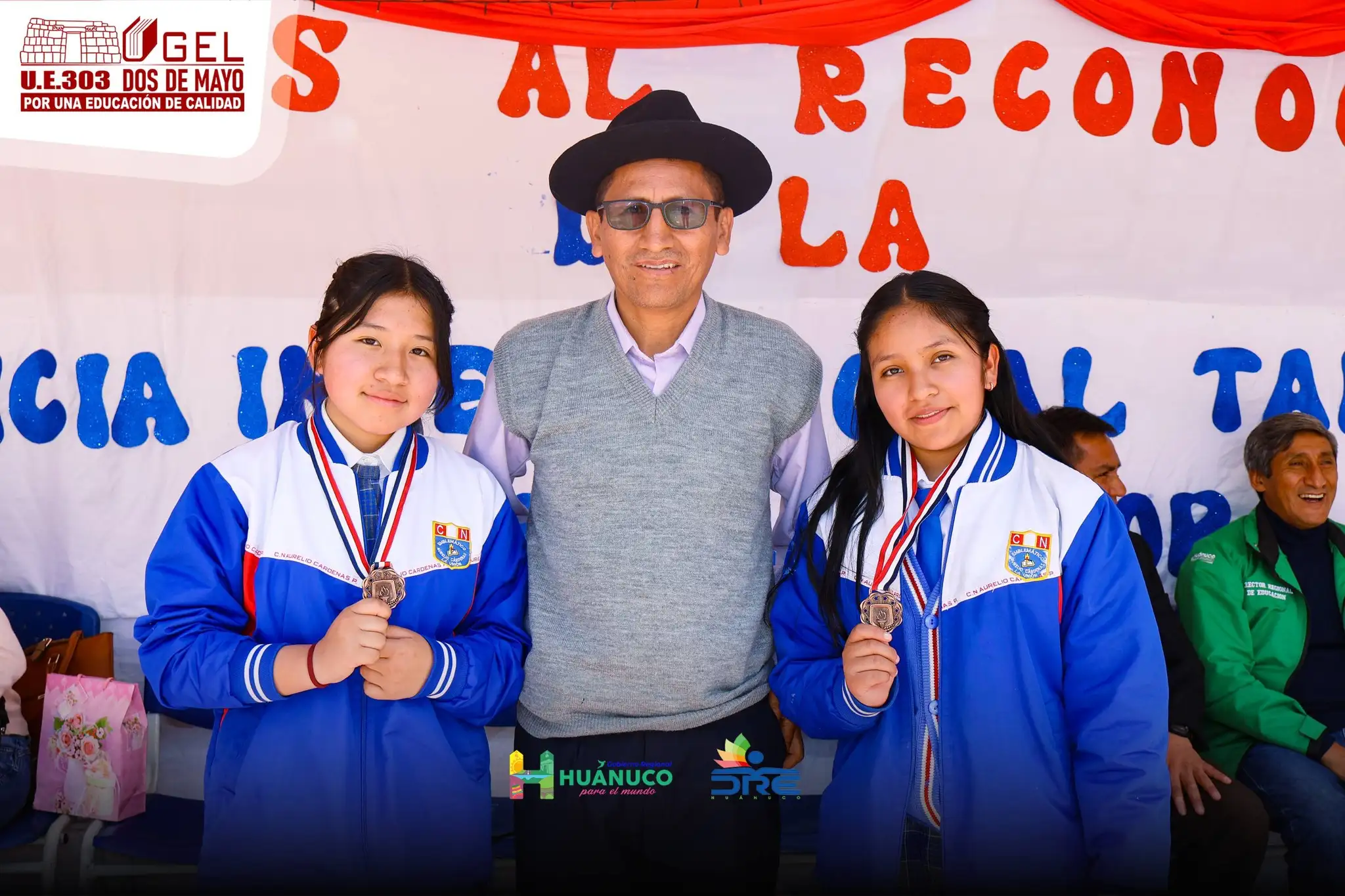 Tras su retorno al país, Ariana Herrera Ascencio y Luana Milkar Gabriel Ariza fueron recibidas en la ciudad de La Unión, capital de la provincia de Dos de Mayo, por autoridades educativas y la comunidad escolar.