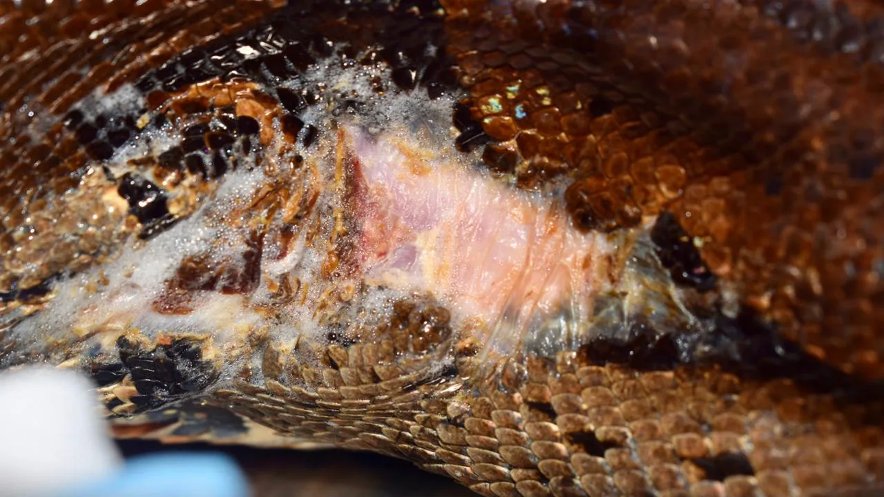 Durante la intervención se constató que la boa, de 2,30 metros de longitud, se encontraba en malas condiciones. Presentaba lesiones en el cuerpo, mucosas pálidas que evidenciaban anemia severa por mal manejo y alimentación inadecuada, además de un estado corporal deficiente. El reptil fue puesto bajo resguardo para recibir atención veterinaria y un tratamiento especializado.
