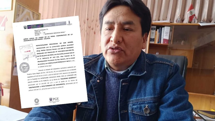 El Procurador Público de la Municipalidad Provincial de San Román, Walter Mamani Pacori, presentó una denuncia penal ante la Fiscalía Penal Corporativa contra el director Regional de Transportes y Comunicaciones, Beto Ángel Portillo Calcina, y contra quienes resulten responsables, por la presunta falsificación y ocultamiento de la Resolución Regional N° 472-2020, documento clave que autorizaba el uso del terreno donde se construirá el Colegio de Alto Rendimiento (COAR) en Juliaca.