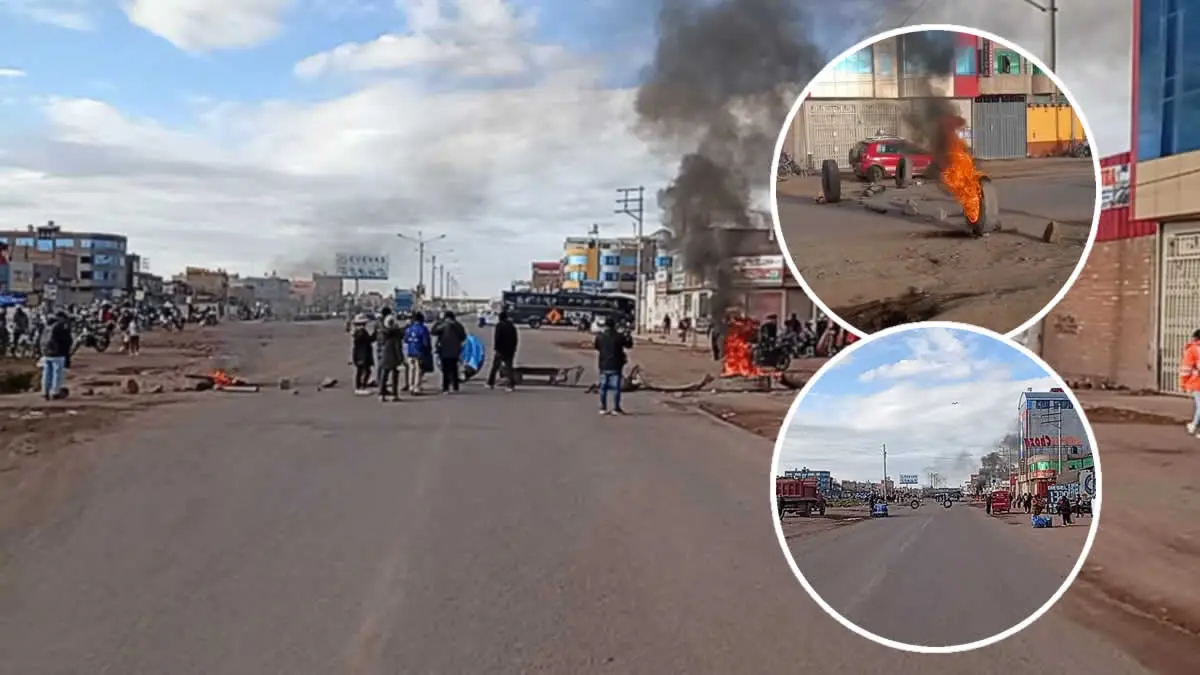 ((🔴 ))|#Juliaca| Bloquean salida a Cusco de la ciudad de Juliaca.