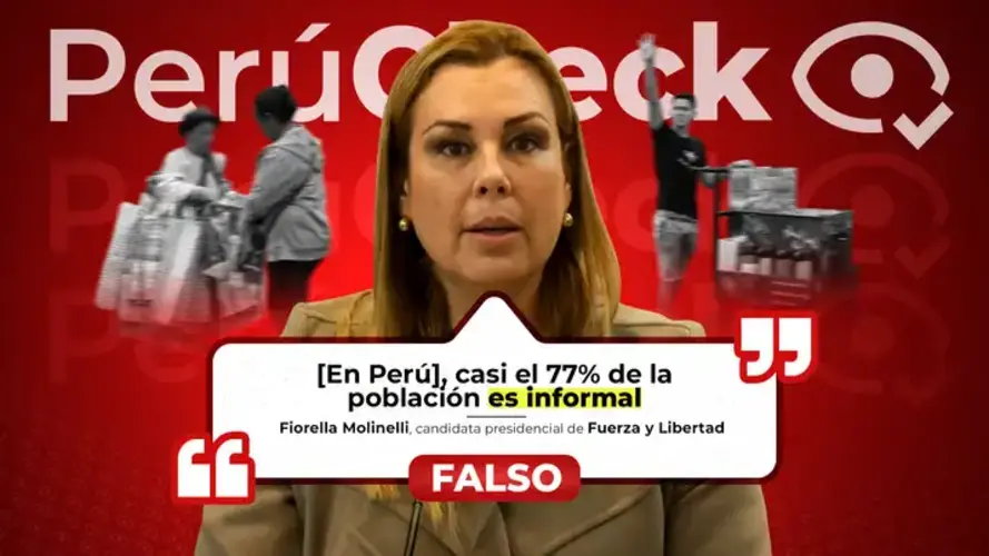 La información oficial disponible muestra que la tasa de empleo informal en el Perú alcanzó el 70.7% de la población ocupada en 2025. La afirmación de la candidata Fiorella Molinelli, al señalar que “casi el 77% de la población es informal”, no coincide con el dato oficial ni con la población que mide el indicador, por lo que Perú Check califica la declaración como falsa.