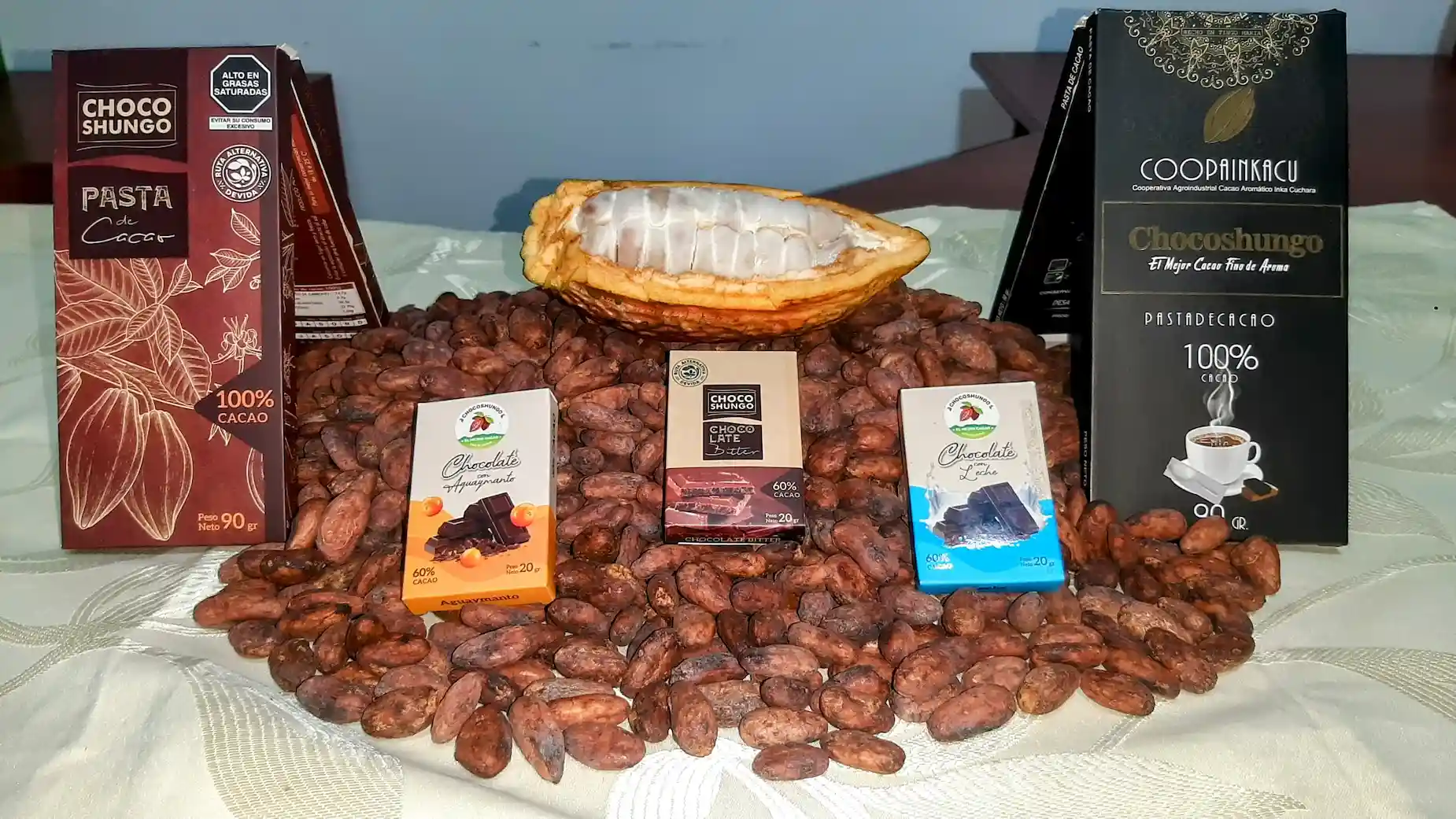 La marca de chocolate de la cooperativa, Choco Shungo, refleja el espíritu y la pasión de sus miembros. «Choco de chocolate, shungo de corazón, porque nos alegra el corazón, nos motiva y mejora la circulación de la sangre, beneficiando tanto al corazón como al cerebro», comenta Estela con entusiasmo.