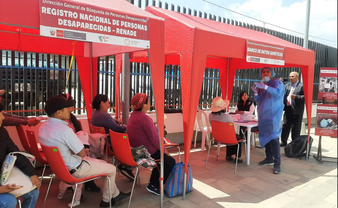 La feria se organizó en el marco del Día Internacional de las Víctimas de Desapariciones Forzadas, en la explanada del Lugar de la Memoria de Junín “Yalpana Wasi”, donde los familiares pudieron acceder a los distintos servicios que brinda el Minjusdh, como inscribirse en el Registro Nacional de Personas Desaparecidas y de Sitios de Entierro (Renade), registro a cargo de la Dgbpd. Asimismo, familiares de los desaparecidos participaron de la toma de muestras biológicas, de la cual se obtendrán los perfiles genéticos que se guardarán en el Banco de Datos Genéticos con fines de identificación.