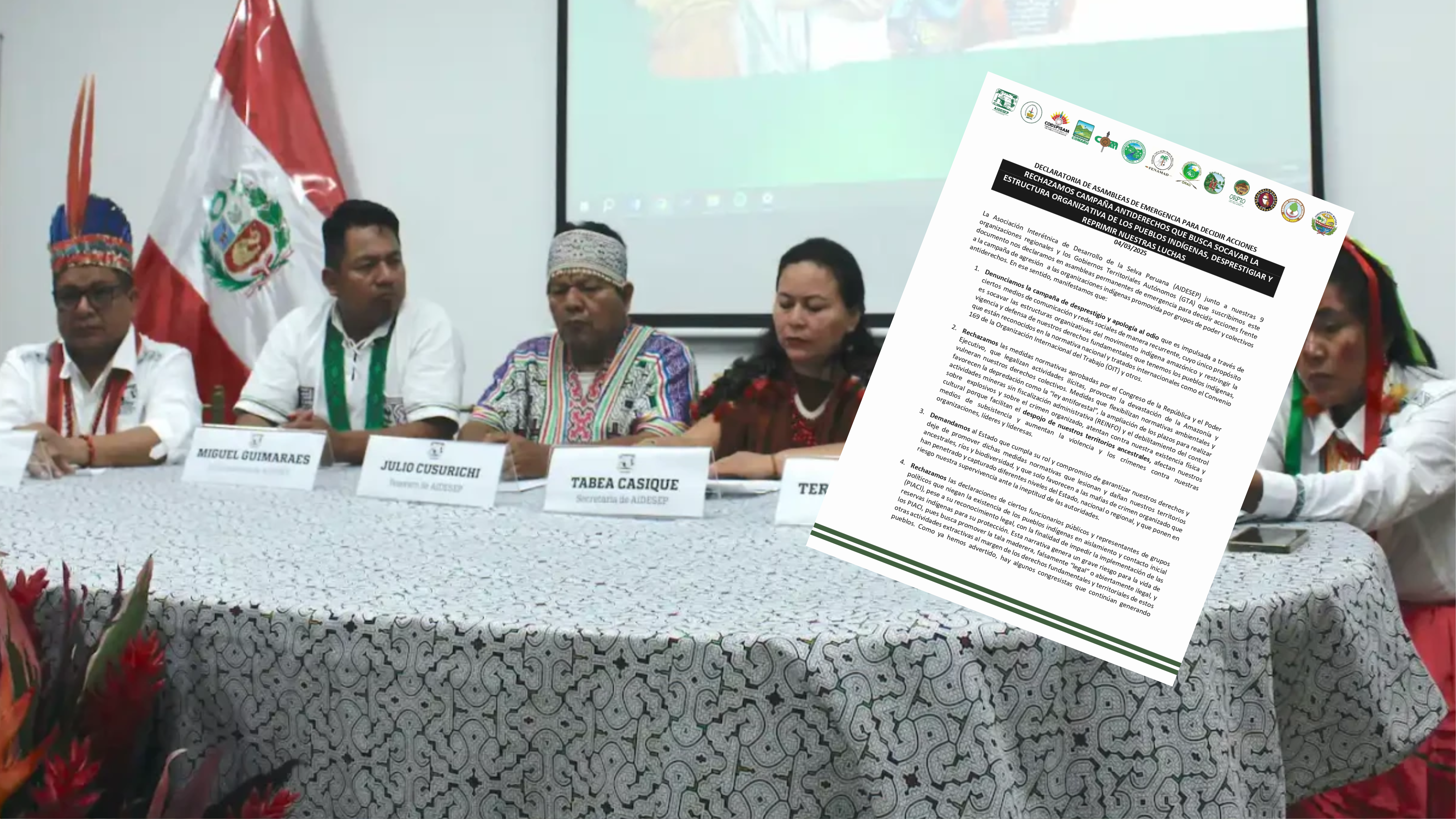 Aidesep y las organizaciones firmantes también rechazan lo que consideran una campaña para criminalizar su labor y debilitar sus bases regionales. “Hemos sido testigos de un acelerado debilitamiento de garantías esenciales relacionadas a nuestros territorios ancestrales”, advierten.