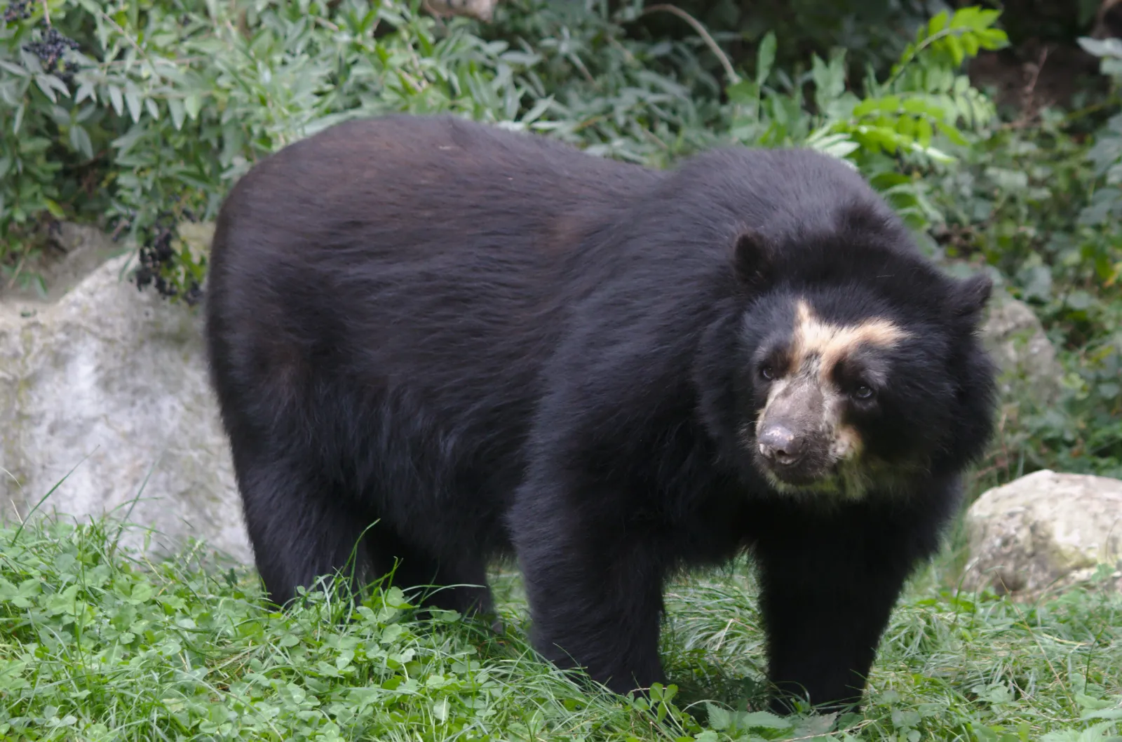 El oso de anteojos, que puede alcanzar hasta 200 kg de peso, se alimenta principalmente de plantas como bromelias, orquídeas y frailejones, pero también consume insectos y pequeños vertebrados. A pesar de su tamaño, es una especie tímida que prefiere evitar el contacto con seres humanos y solo se muestra agresiva cuando se siente amenazada.